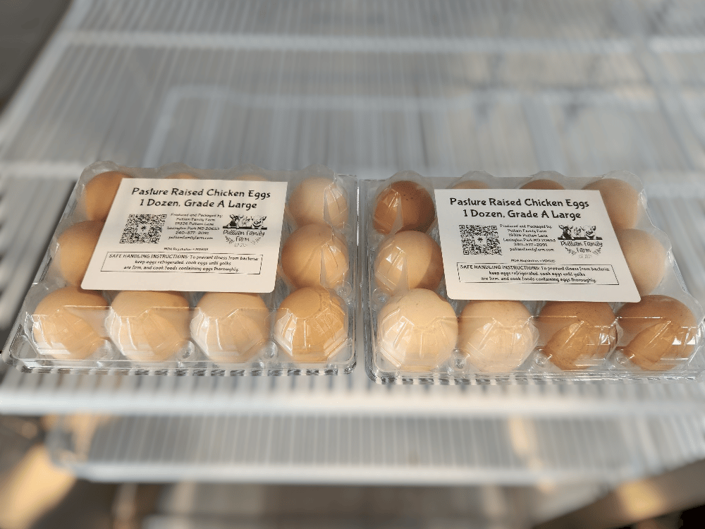 1 dozen of fresh eggs from our free ranged flock! Unwashed/room temp for $5 or washed/refrigerated for $6.